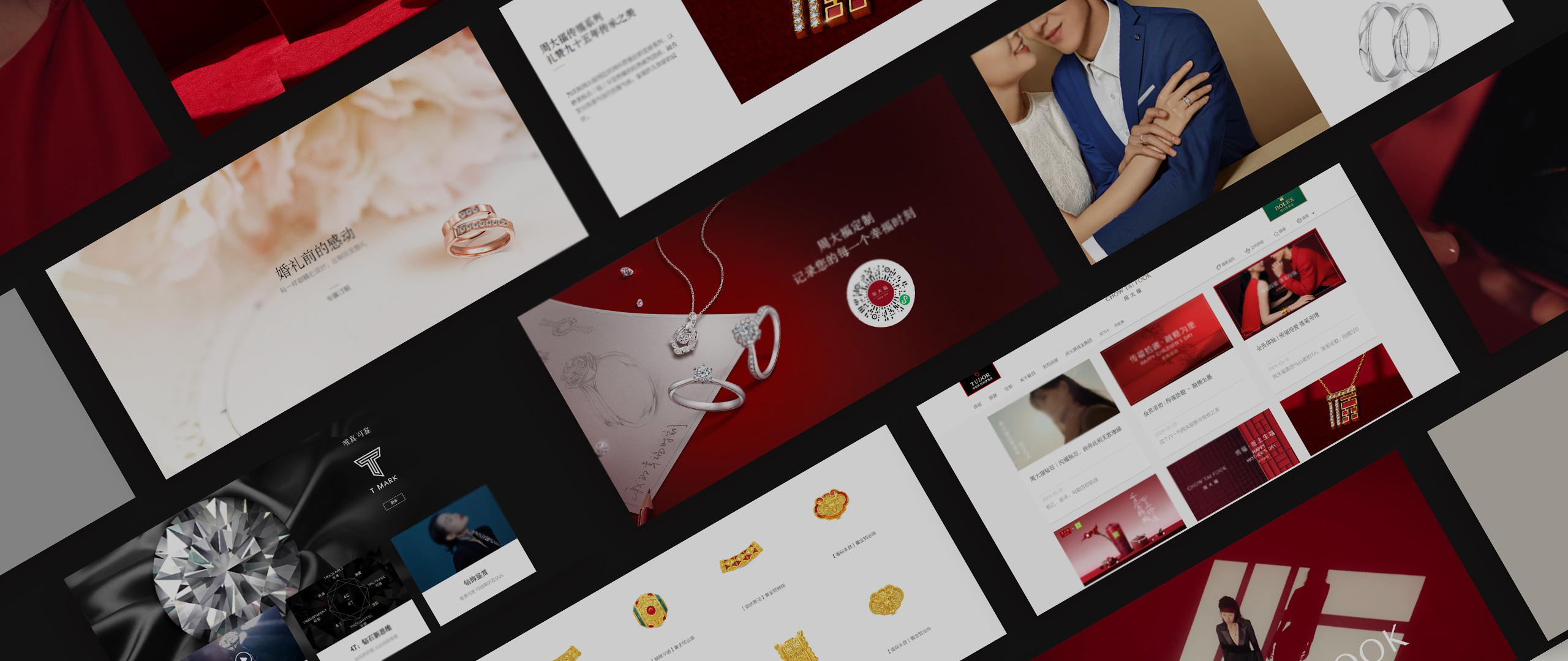 奢華典雅風(fēng),以紅色為主色調(diào),契合珠寶定制化質(zhì)感,視覺(jué)聚焦鉆石火彩、黃金工藝細(xì)節(jié)。